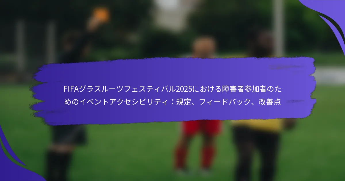 FIFAは、障害のある参加者がグラスルーツフェスティバルにアクセスできるようにすることにコミットしています。これには、車椅子用のスロープ、アクセス可能なトイレ、指定席エリアなどの物理的な配慮が含まれます。さらに、手話通訳者や点字の印刷資料などのコミュニケーション支援も提供され、参加を促進します。