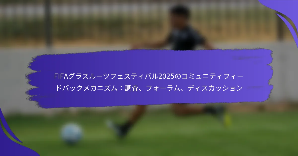 コミュニティからのフィードバックを収集することは、今後のFIFA草の根フェスティバルを改善するために重要です。効果的なフィードバックメカニズムを実施することで、参加者の声が聞かれ、考慮されることが保証されます。